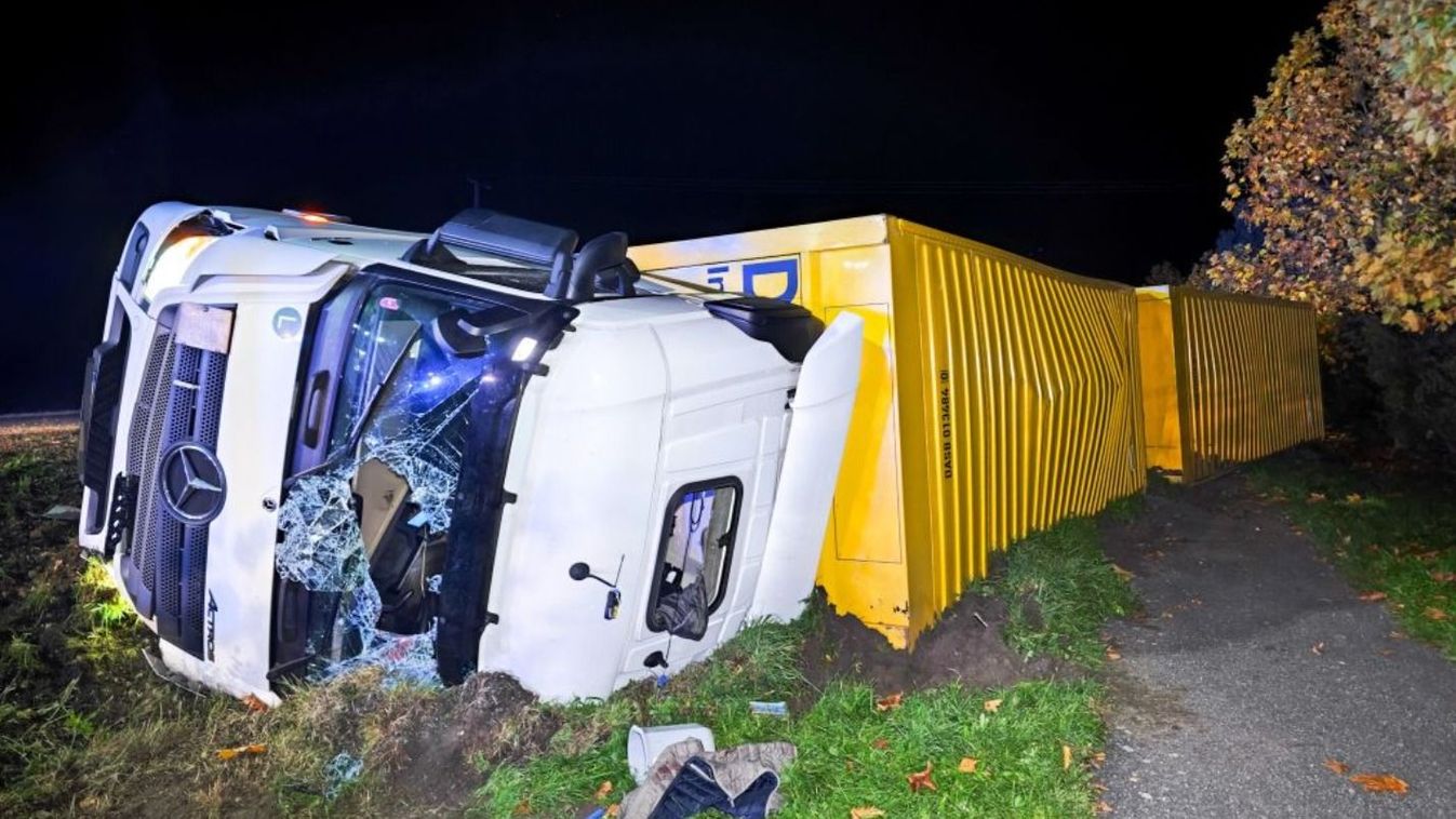 Forrás: magyarnemzet.hu/belfold/2025/10/felborult-kamion-baleset-veszelyes-anyag-86-os-fout-fotok